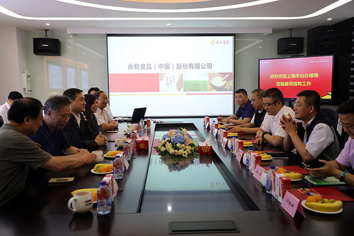 2019年7月17日,上海市臺(tái)辦李驍東副主任一行蒞臨永和豆?jié){總部調(diào)研和指導(dǎo)工作,陪同調(diào)研和指導(dǎo)工作的領(lǐng)導(dǎo)還有市臺(tái)辦經(jīng)濟(jì)處丁磊處長(zhǎng)、市臺(tái)協(xié)汪友華秘書(shū)長(zhǎng)、市臺(tái)辦研究室陳小勇副處長(zhǎng)、市臺(tái)辦經(jīng)濟(jì)處王宇干部、市臺(tái)協(xié)秘書(shū)處閔家瑞干部。市臺(tái)協(xié)副會(huì)長(zhǎng)、市臺(tái)協(xié)浦東工委會(huì)主委、永和食品(中國(guó))股份有限公司林建雄董事長(zhǎng),市臺(tái)協(xié)浦東工委會(huì)羅佩燕副主委,市臺(tái)協(xié)浦東工委會(huì)張惠民總干事,浦東臺(tái)辦范桂國(guó)前副主任,永和食品(中國(guó))股份有限公司鄧毅雄副總經(jīng)理、餐飲事業(yè)群支鐵牛副總經(jīng)理出席了本次會(huì)議。