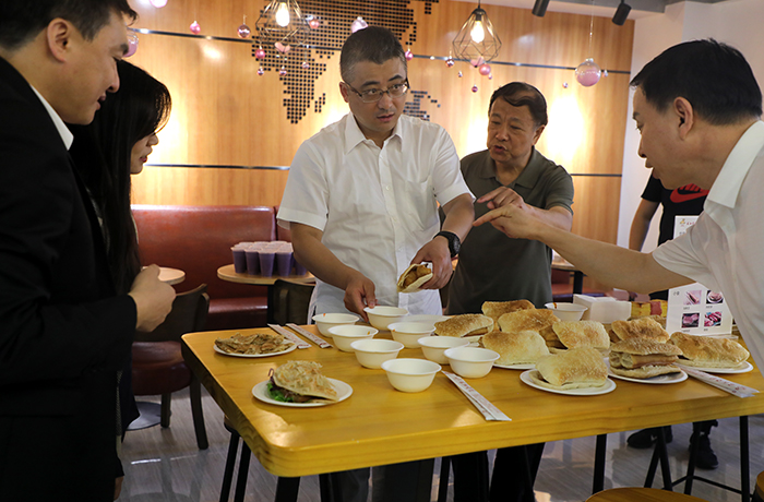 會(huì)議結(jié)束后,李驍東副主任一行指導(dǎo)了永和公司的品牌文化建設(shè),參觀(guān)了永和公司的“品牌文化館”和“永和休閑吧”。李驍東副主任一行饒有興趣地品嘗了在“永和休閑吧”現(xiàn)場(chǎng)制作的永和豆?jié){、臺(tái)灣手抓餅、油條、青稞面和紫薯青稞豆?jié){等特色美食。李驍東副主任對(duì)永和公司的美食贊不絕口,要求永和公司嚴(yán)抓食品安全,繼續(xù)為市民的飲食安全做出貢獻(xiàn)。